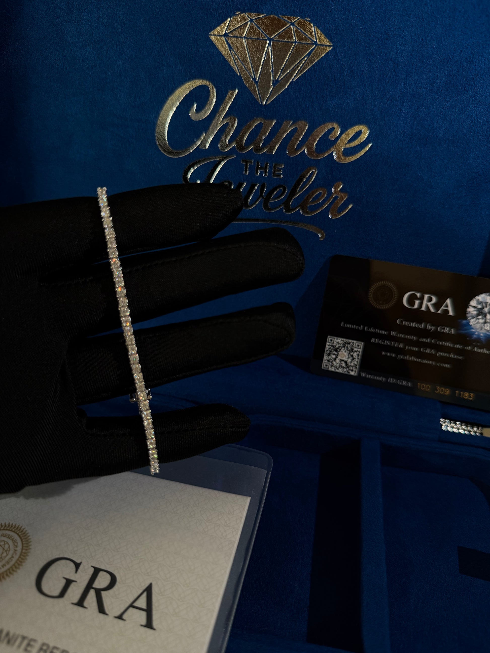 Shine like never before. This Exclusive Moissanite  2mm Tennis Bracelet is made with solid 925 sterling silver and features D-color, VVS moissanite stones — each one guaranteed to pass a diamond tester.