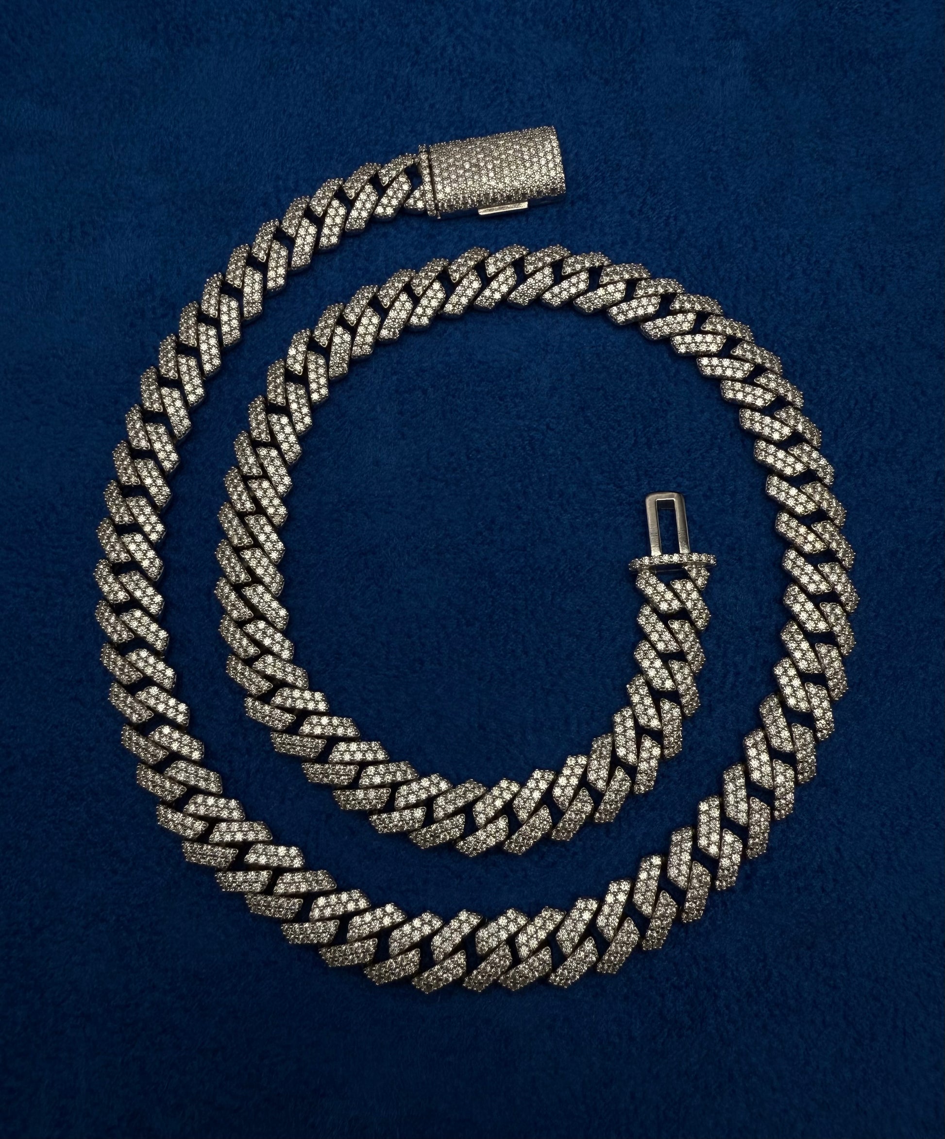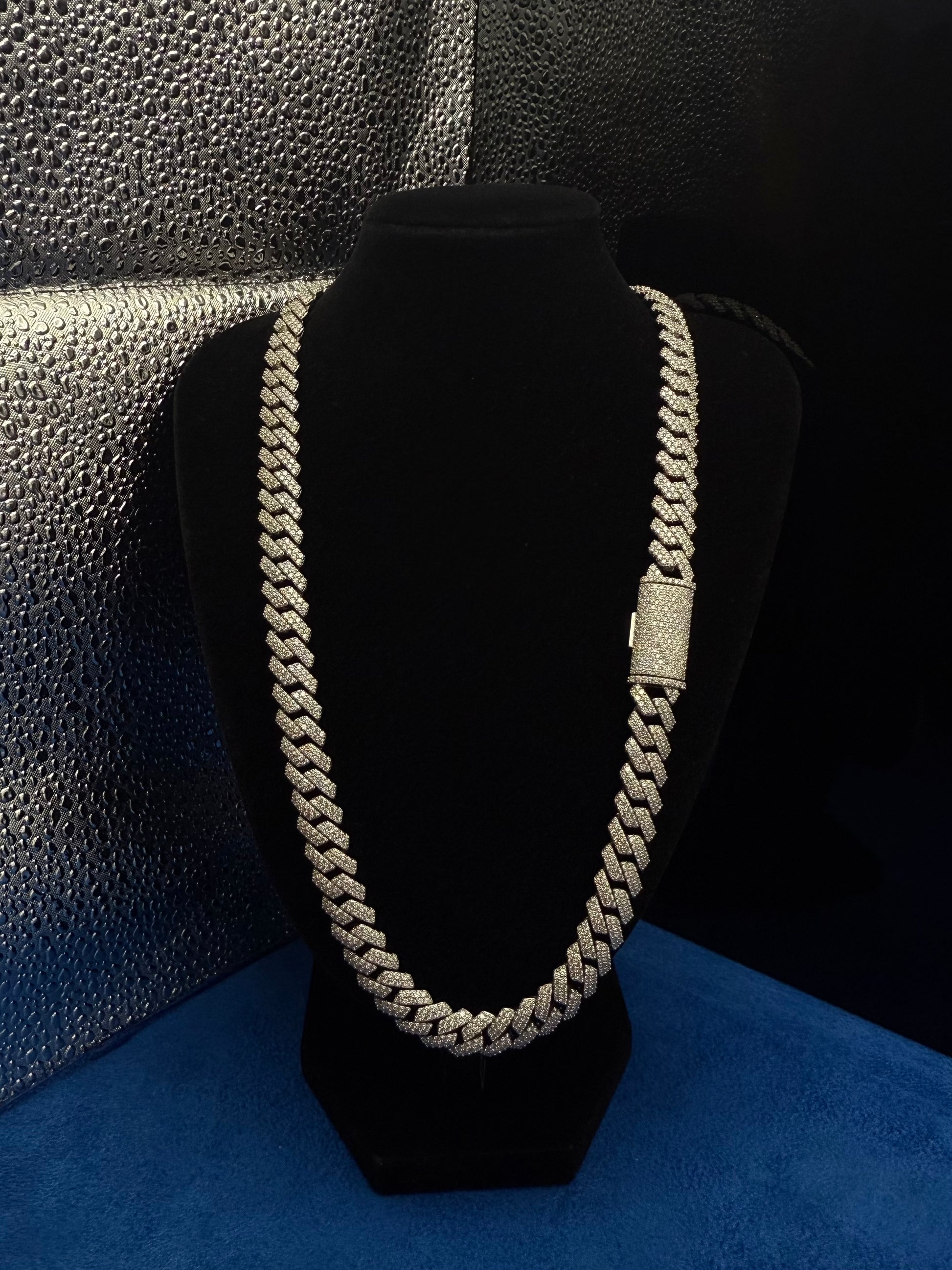 Shine like never before. This Exclusive Moissanite Cuban Link Chain is made with solid 925 sterling silver and features D-color, VVS moissanite stones — each one guaranteed to pass a diamond tester.