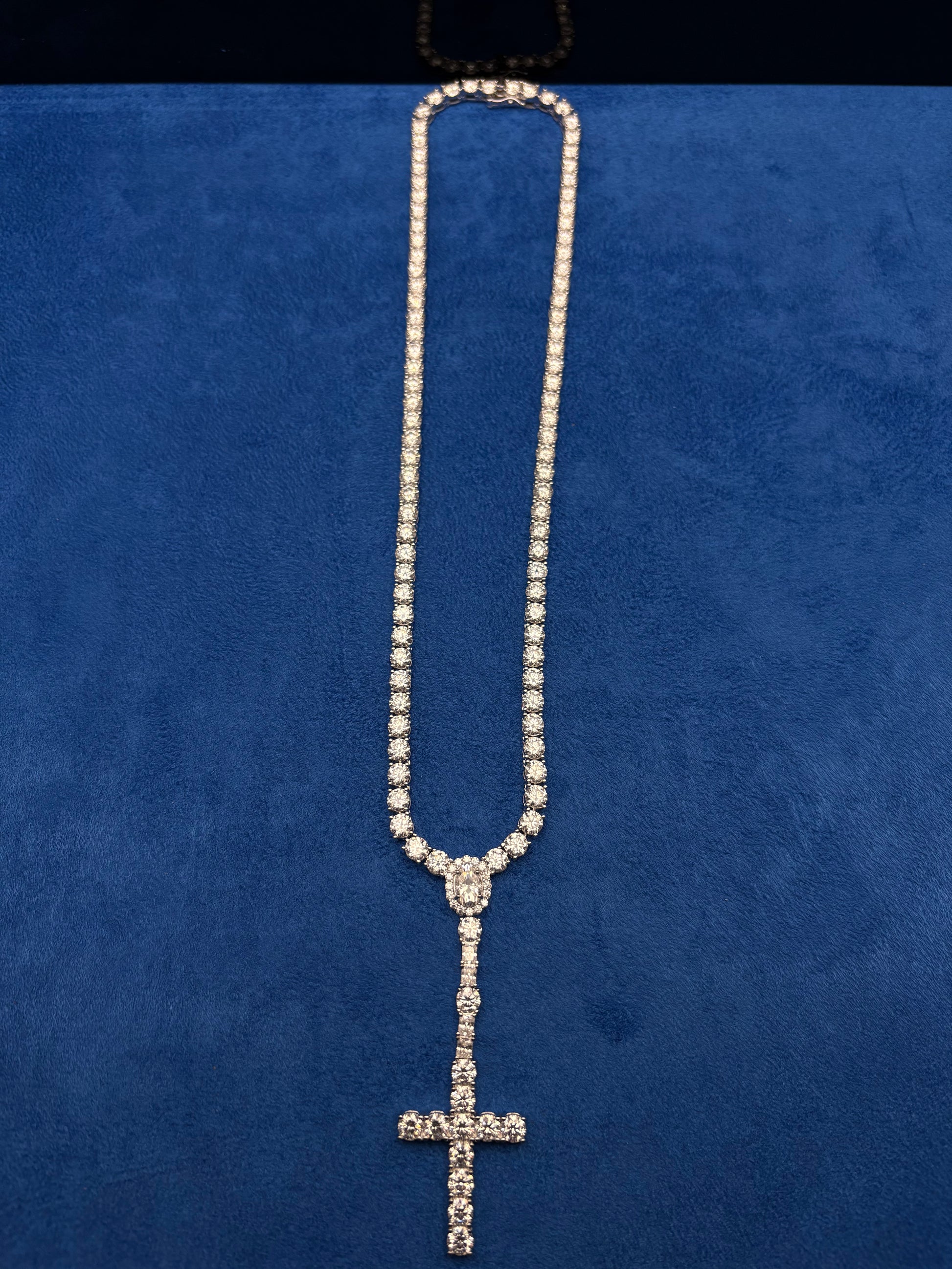 Shine like never before. This Exclusive Moissanite Rosary Tennis Chain is made with solid 925 sterling silver and features D-color, VVS moissanite stones — each one guaranteed to pass a diamond tester.