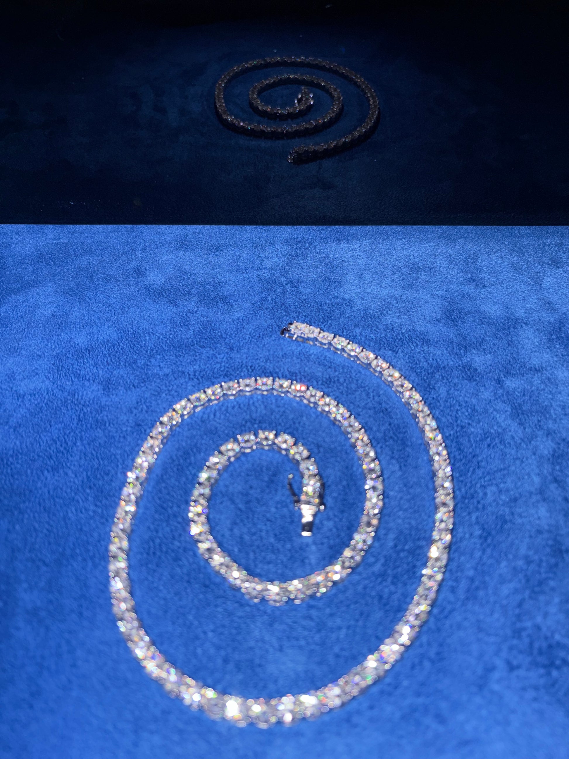 Shine like never before. This Exclusive Moissanite Tennis Chain is made with solid 925 sterling silver and features D-color, VVS moissanite stones — each one guaranteed to pass a diamond tester.